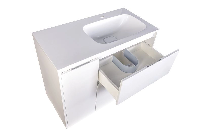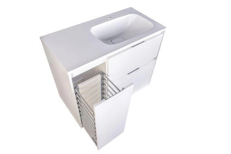 Для подвесных тумб используются усиленные хромированные навесы "CAMAR", мирового лидера в производстве высококачественных креплений для мебели.