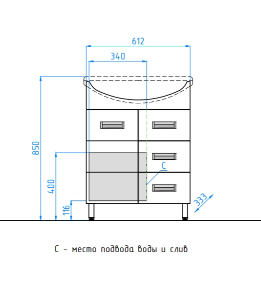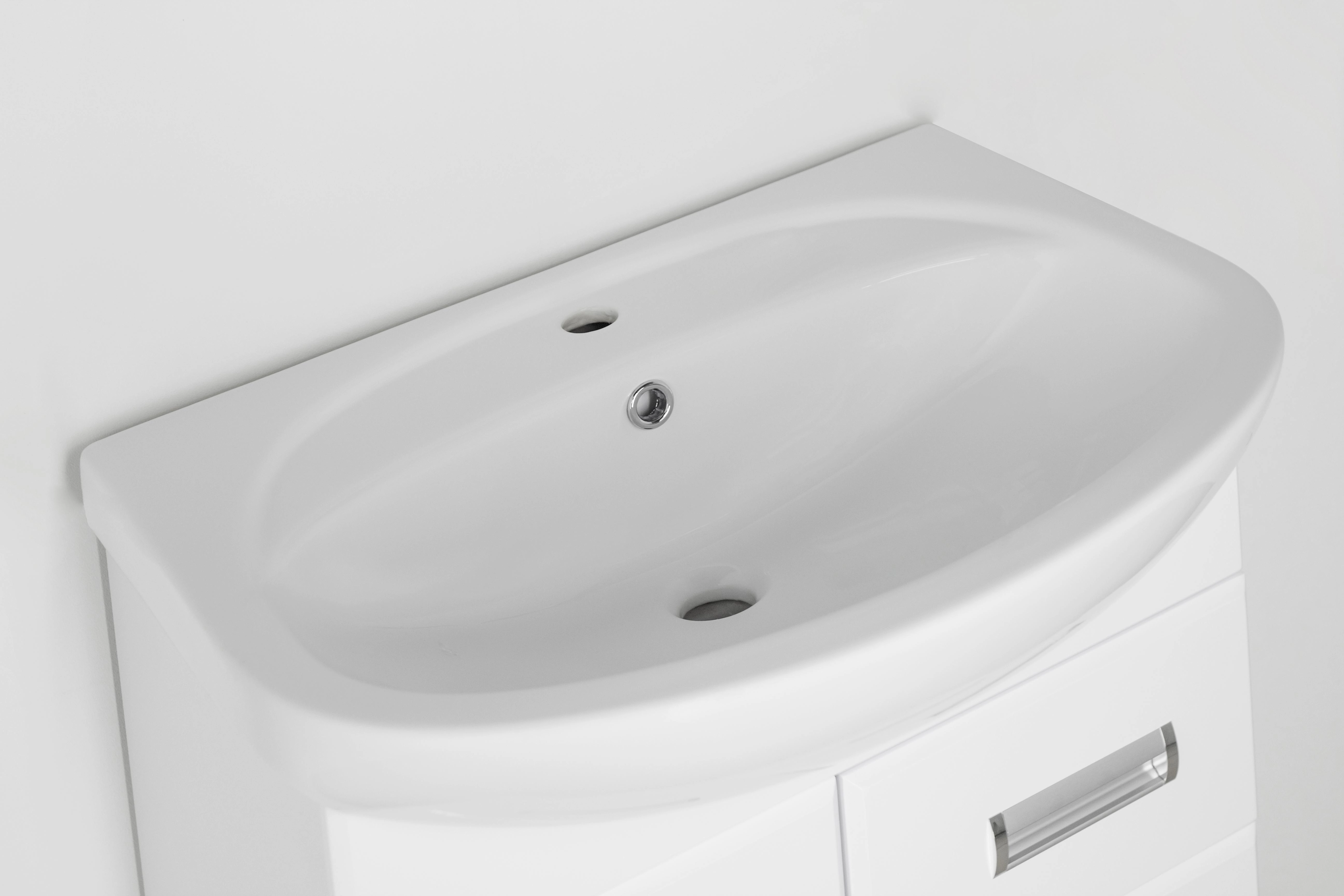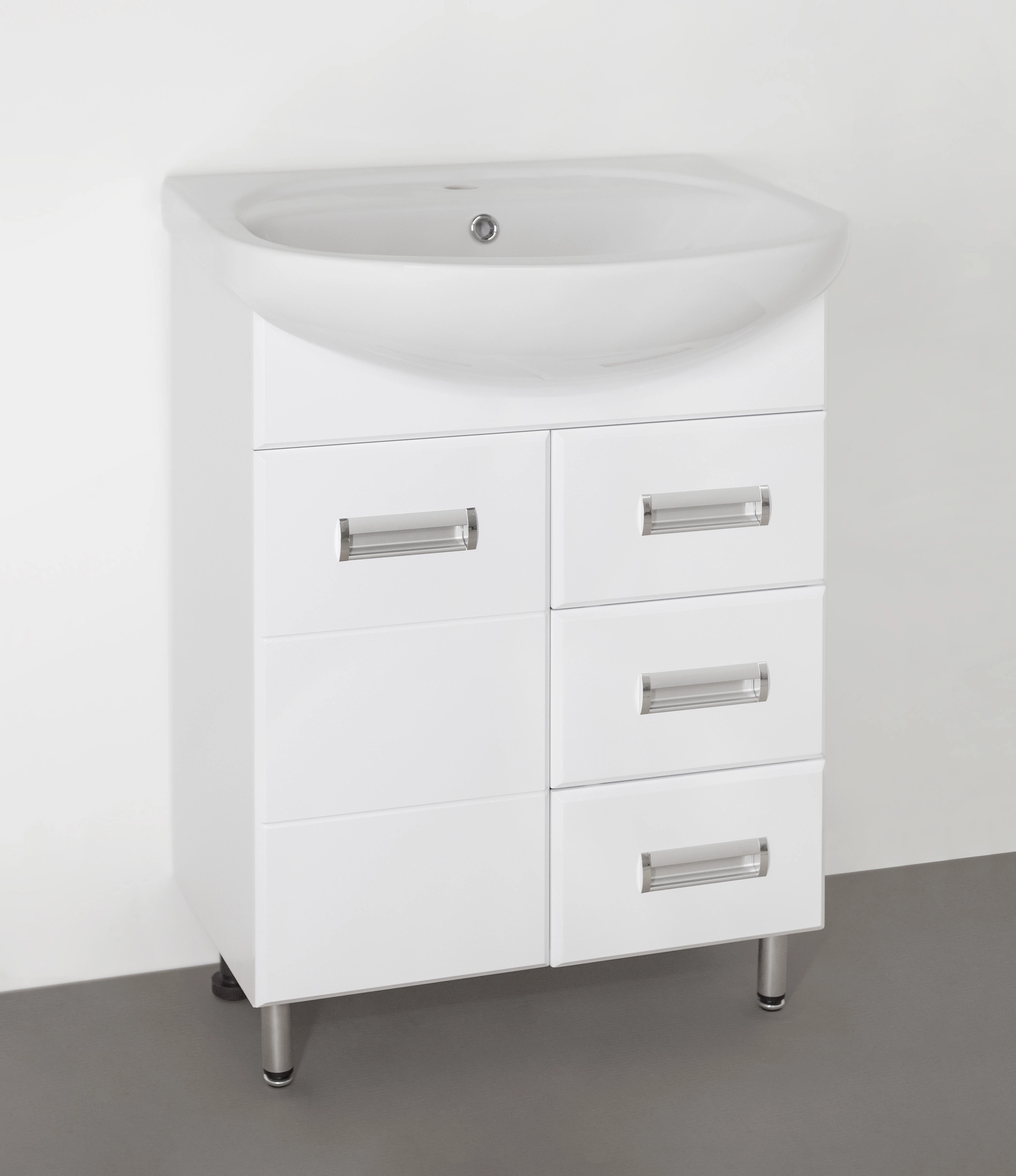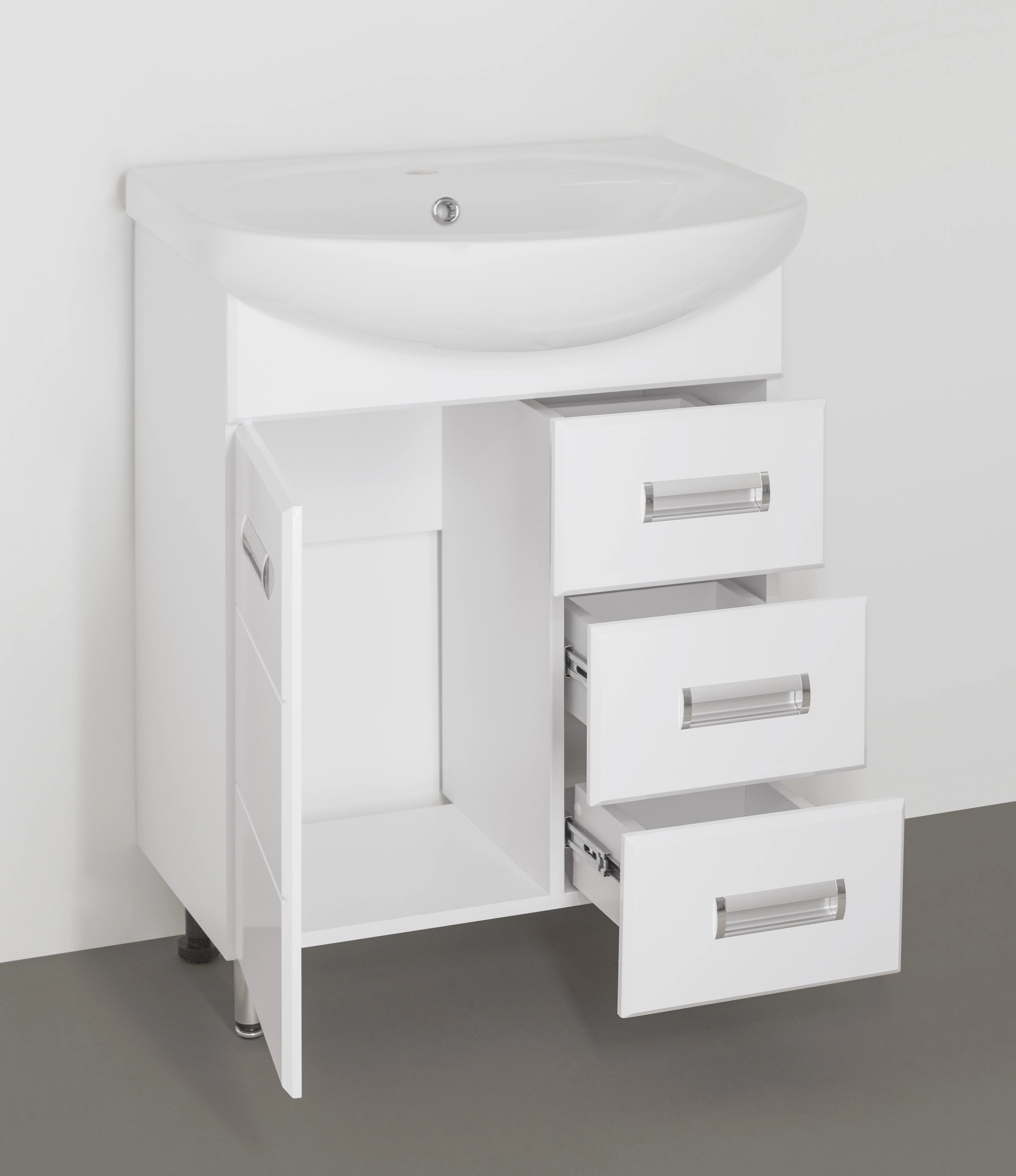 Тумба напольная "Ирис" с прямоугольными фасадами современного дизайна, декорированная врезными ручками хром/матовый хром. Направляющие полного выдвижения Hettich, обеспечивают плавность и бесшумность хода, высокую надежность и прочность. Данная тумба предусматривает открытую подводку воды