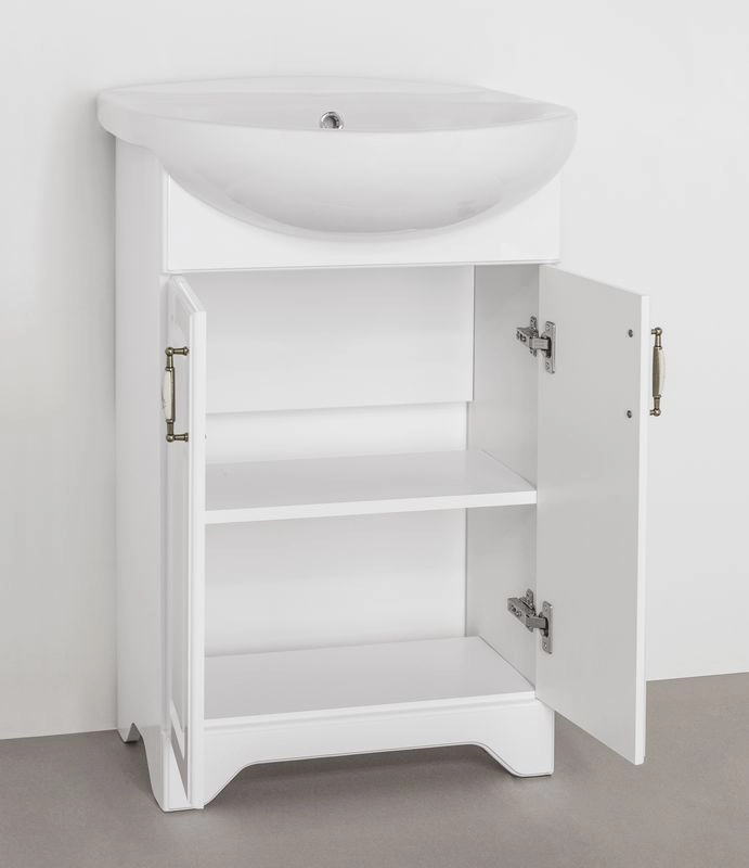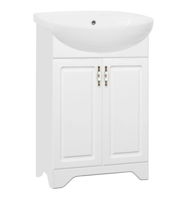Тумба напольная бренда "Style Line" коллекции "Олеандр-2" классического дизайна, декорированная ручками с керамическими вставками "под бронзу" с изящным рисунком. Направляющие полного выдвижения Hettich; сборка изделия с помощью эксцентриковых стяжек Hafele; все материалы полностью влагостойкие. Данная тумба предусматривает открытую подводку воды