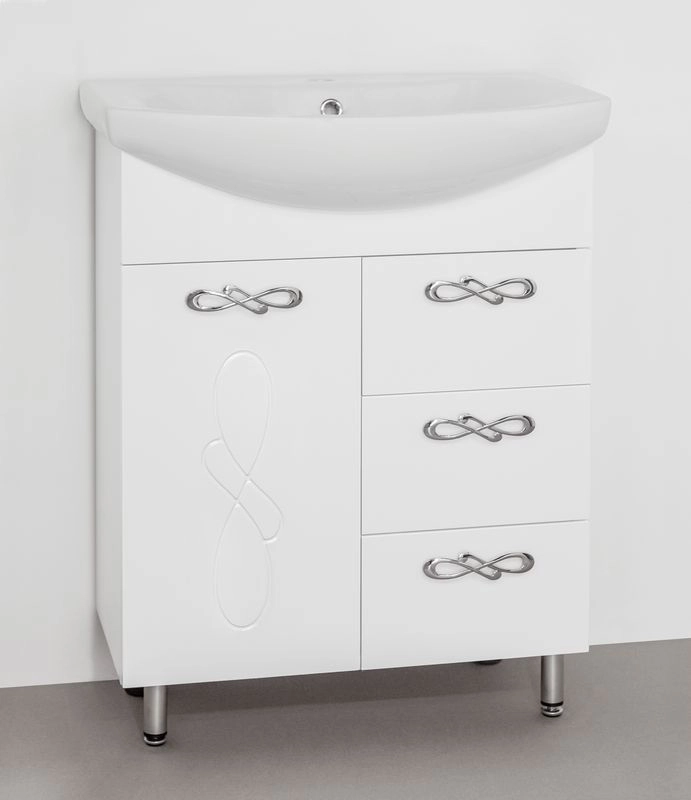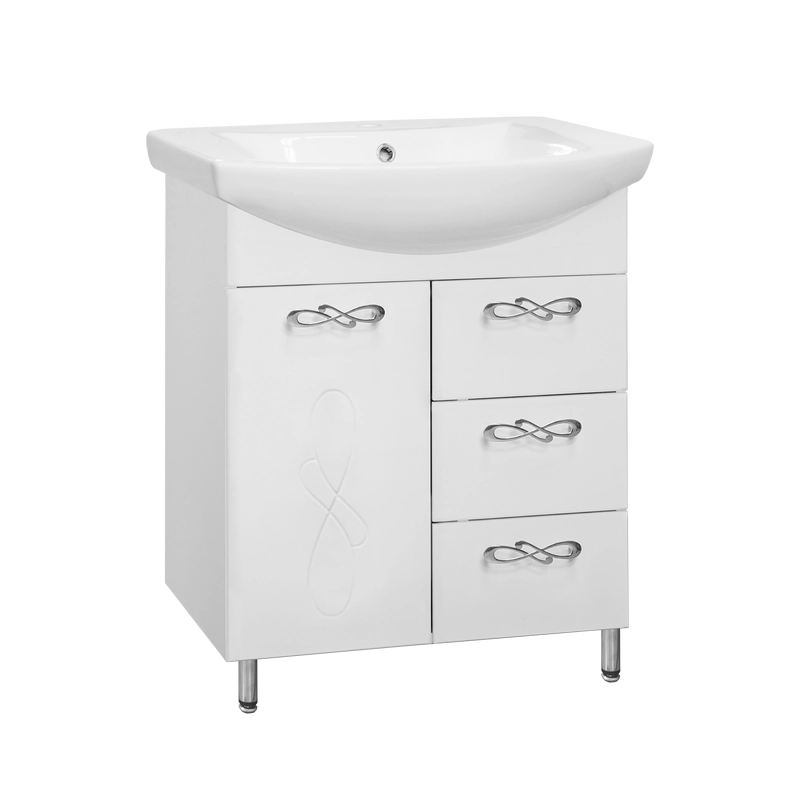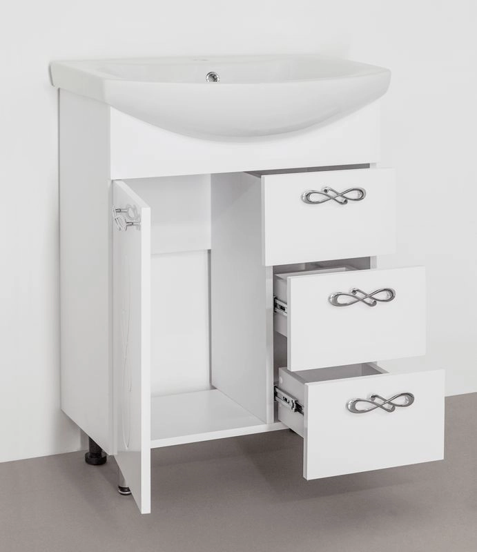 Тумба напольная "Венеция" с элегантной фрезеровкой фасада и декоративными ручками, которые придают всей коллекции особый шарм . Фурнитура - хром, петли на дверцах с механизмом плавного закрывания. Направляющие полного выдвижения Hettich, обеспечивающие плавность и бесшумность хода, высокую надежность и прочность. Данная тумба предусматривает открытую подводку воды