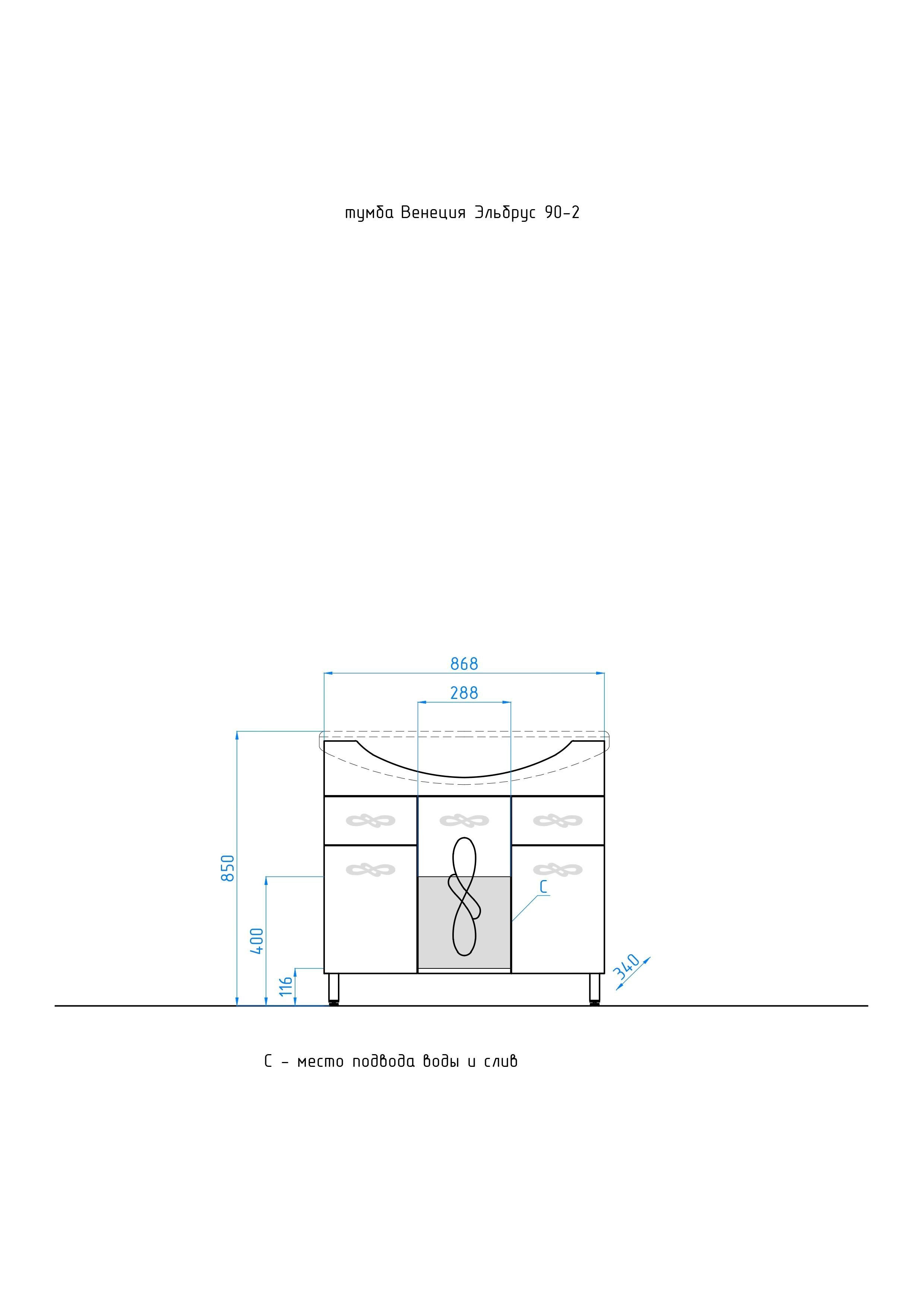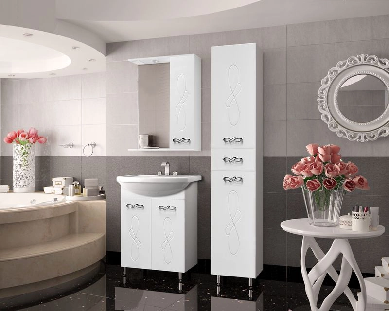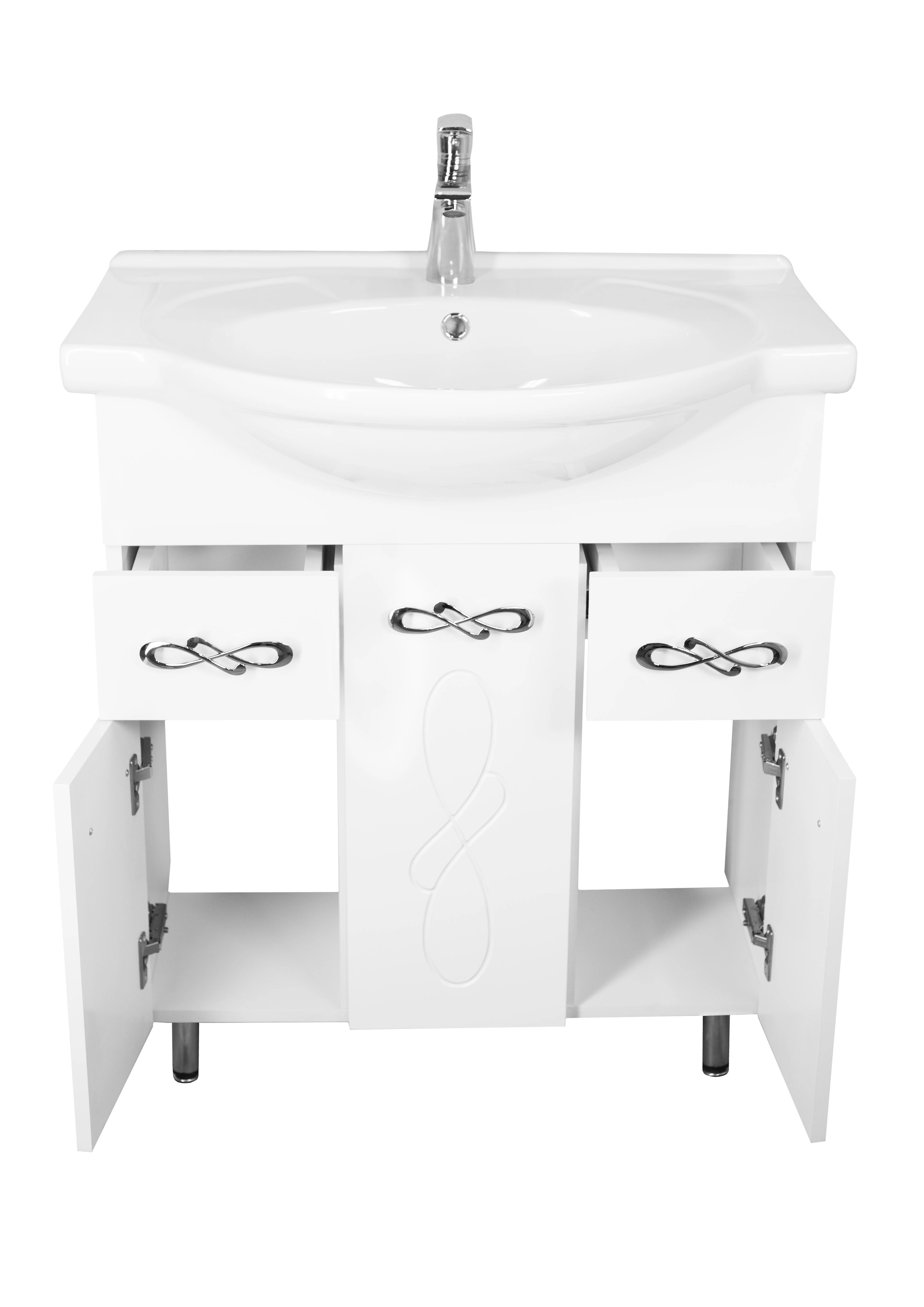 Тумба напольная "Венеция" с элегантной фрезеровкой фасада и декоративными ручками, которые придают всей коллекции особый шарм . Фурнитура - хром, петли на дверцах с механизмом плавного закрывания. Направляющие полного выдвижения Hettich, обеспечивающие плавность и бесшумность хода, высокую надежность и прочность. Данная тумба предусматривает открытую подводку воды