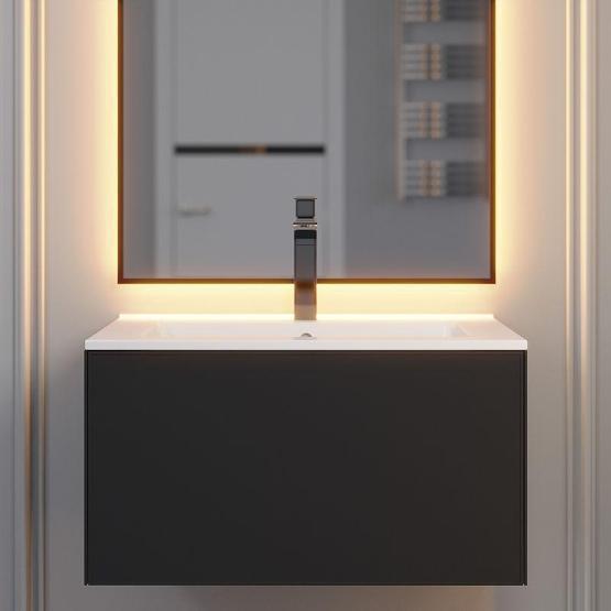 Премиальная коллекция мебели для ванных комнат Parma Premium от бренда Uperwood представлена подвесными тумбами с раковинами шириной 65, 75 и 85 см в черном и белом цвете.