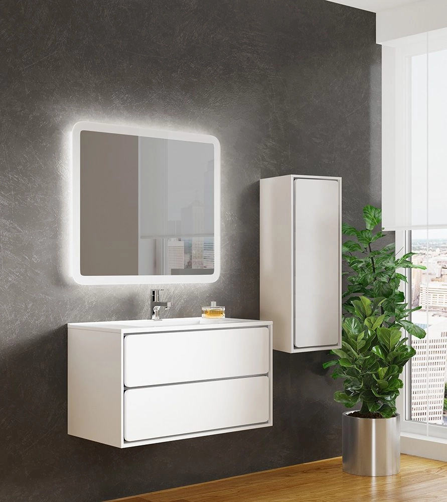 Мебель Бруно-2 — Два выдвижных ящика с механизмами плавного закрывания «Push-To-Open»Фасад с декоративной отделкой цвета «серебро».