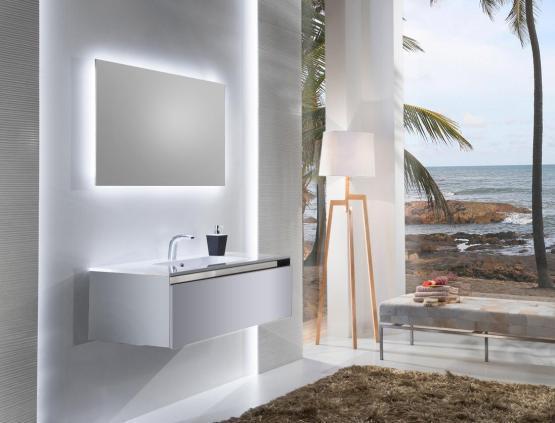 Подвесная тумба с одним, двумя ящиками и напольная — с тремя ящиками оснащены системами полного выдвижения и плавного закрывания Firmax..