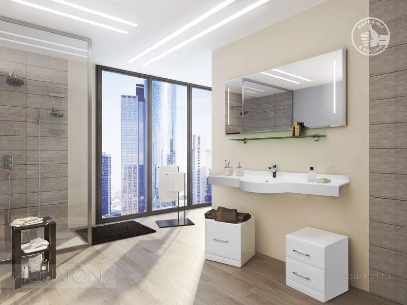 Акватон раковина Отель 150 см с навесами цвет белый |
