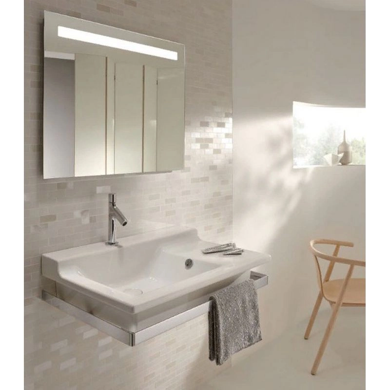 РАЗМЕРЫ :80 x 3 x 65 см ВЕС :9 кг УСТАНОВКА : Крепление к стене ЭЛЕКТРИЧЕСТВО: : 230В, 8Вт, класс II, IP 44 Инфракрасный выключатель Встроенная светодиодная подсветка Функция анти-пар