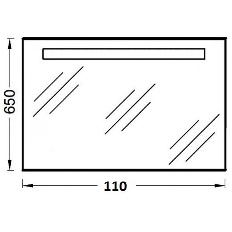 РАЗМЕРЫ :110 x 3 x 65 см ВЕС :13 кг УСТАНОВКА : Крепление к стене ЭЛЕКТРИЧЕСТВО: : 230В, 12Вт, класс II, IP 44 . Функция анти-пар Встроенная светодиодная подсветка Инфракрасный выключатель