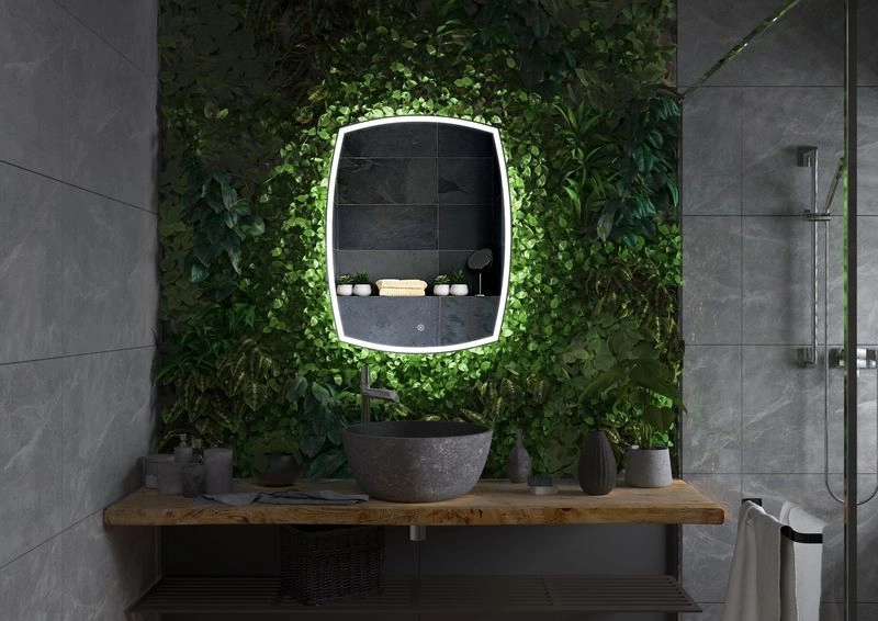 Зеркало для ванной комнаты с ореольной LED подсветкой и сенсорным выключателем. Класс защиты IP44.