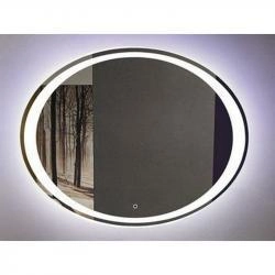 Зеркало для ванной комнаты в багетной раме с LED подсветкой и сенсорным выключателем. Потребляемая мощность 27 W. Класс защиты IP44. Светильник LED (LED лента) (встроено), блок питания (встроено); сенсорный выключатель (встроено).