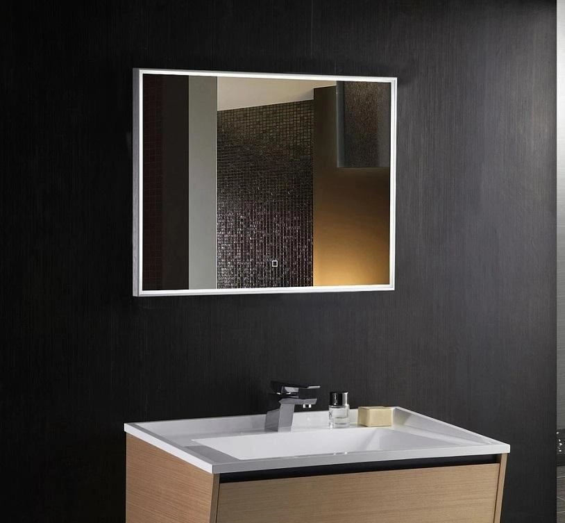 Зеркало прямоугольной формы идеально впишется в классический и любые другие стили, в основе которых — строгость и чёткость линий. Модель дополнит дизайн своими геометричными чертами и подчеркнёт упорядоченность такого интерьера, но вместе сделает его легче. Лаконичный рисунок по периметру с LED-подсветкой создаёт иллюзию тонкой, изящной светлой рамы. Благодаря этому горизонтальное зеркало воспринимается как окно — добавляет пространству света и воздуха, расширяет его. Мягкое свечение, регулируемое сенсорным выключателем с функцией диммера, комфортно для глаз и усиливает ощущение гармонии и спокойствия.