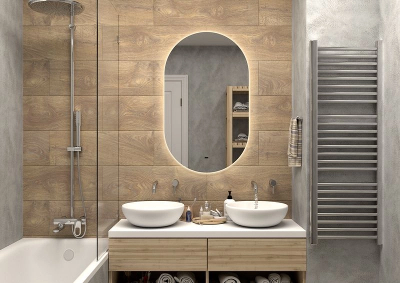 Оснащение: LED подсветка, блок питания, крепление зеркала, клеммник, сетевой шнур, датчик движения "на взмах руки", теплая подсветка