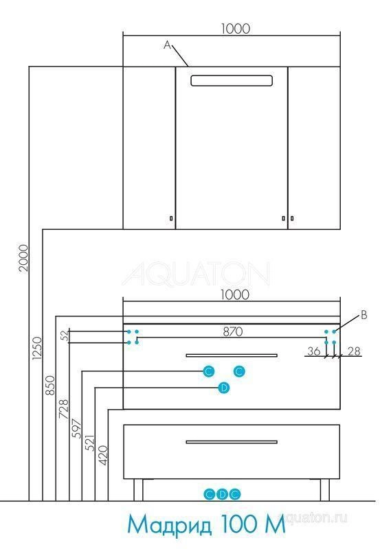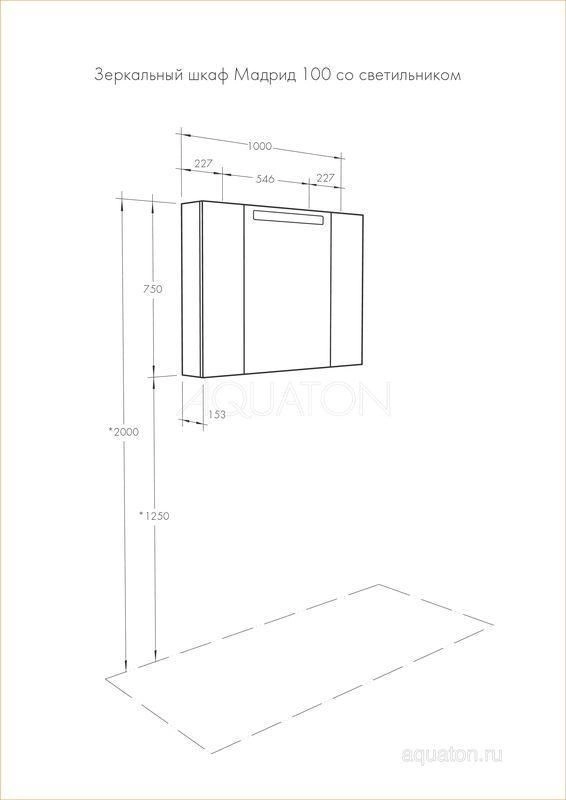 Aquaton 1A111602MA010 Комплектация: полка стеклянная - 5 полкодержатель - 20 светильник - 1 Габариты ш*в*г (мм) 1000*750*149.