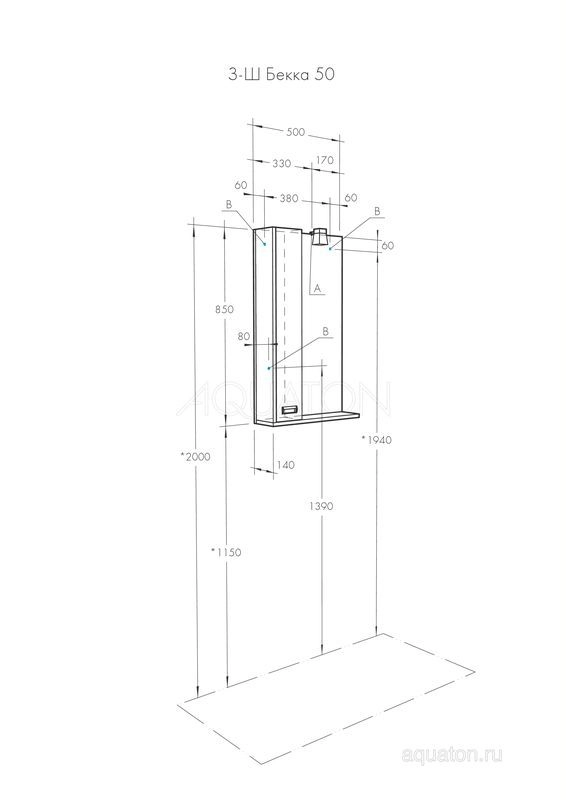 Тумба под раковину AQUATON Бекка PRO 50 белый, дуб сомерсет 1A210801BAC20 |