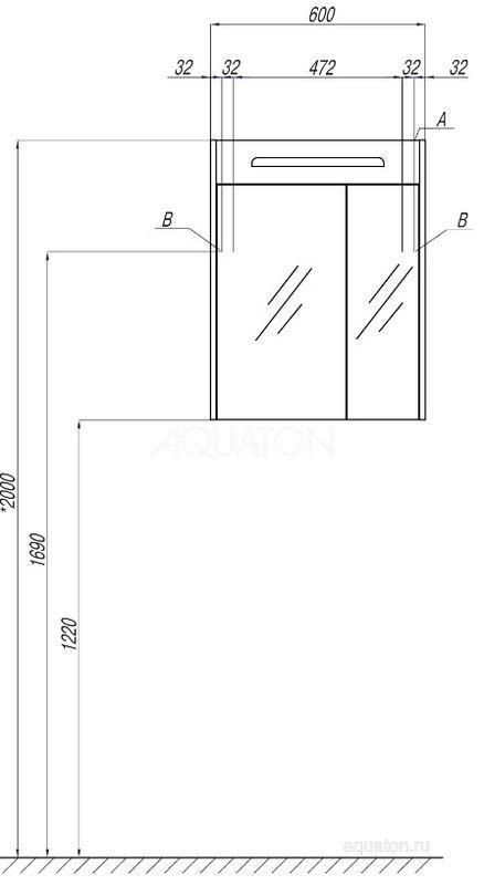 Материал фасадов : влагостойкая ЛДСП, зеркало.