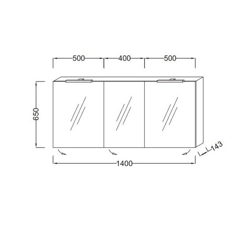 КОЛЛЕКЦИЯ :ОБЩАЯ КАТЕГОРИЯ РАЗМЕРЫ :140 x 14,30 x 65 см ВЕС :30 кг ТИП МЕБЕЛИ: 3 зеркальные двойные дверцы ЭЛЕКТРИЧЕСТВО: : 230В, 3.5Вт, класс II, IP 44 . 3 дверцы с двухсторонним зеркалом, 2 стеклянные полки на отделение . Светодиодная подсветка, 1 магни