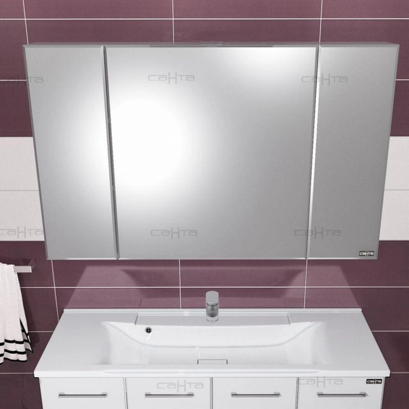 Зеркальный шкаф СаНта Стандарт 120 113019, цвет белый Комплектация: стеклянные полочки - 6 шт. , на дверках петли плавного закрывания. Мебель для ванных комнат СаНта отличает высокое качество, современный дизайн и гарантированный срок службы. Мебель СаНта привлекает своей функциональностью и простотой, а единый стиль изделий дает возможность комплектовать интерьер в различных вариантах в ванной комнате. Для изготовления мебели используется ВДСП и МДФ с покрытием ПВХ пленкой. Фурнитура и комплектующие – ведущих европейских марок. Материалы, используемые в производстве, соответствуют высоким и современным требованиям качества и безопасности. Вся продукция проходит обязательный контроль качества на всех этапах производства.