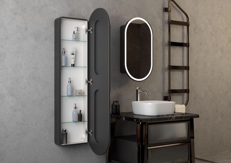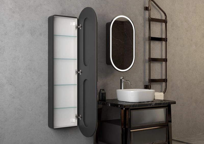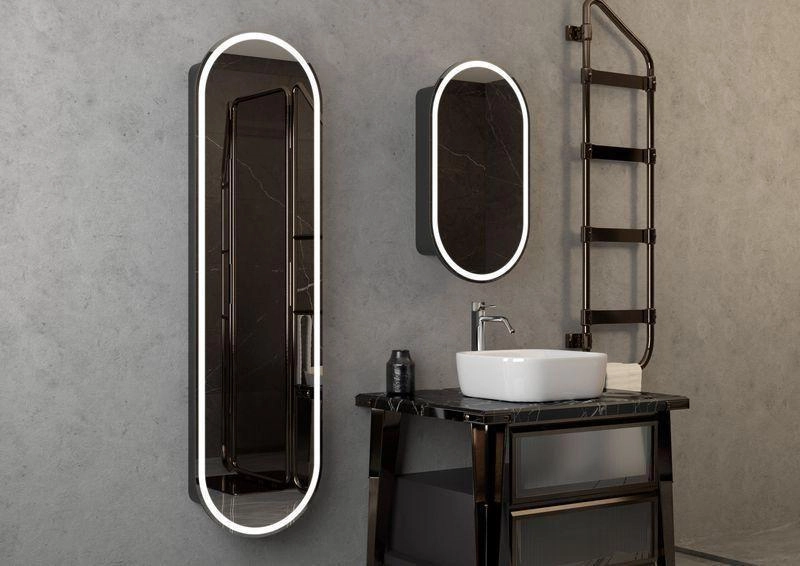 Настенный зеркальный шкафчик идеально сэкономит место в ванной комнате. Наличие полочек позволит разместить все свои ванные принадлежности. В комплектацию входит встроенная LED-подсветка, которая обеспечит мягкое и ровное свечение по периметру всего изделия, и датчик движения, благодаря которому подсветка включается простым взмахом руки. Большим преимуществом также является влагостойкий корпус, реверсивные дверцы (левую и правую сторону можно менять местами), фурнитура с доводчиком для плавного закрывания двери. Потребляемая мощность 30 W.