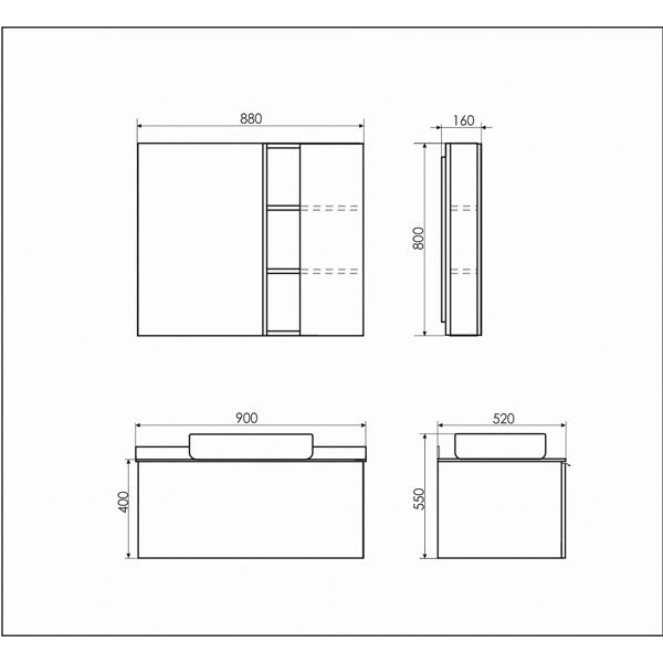Габариты (ШхВхГ): 880*800*160 мм
