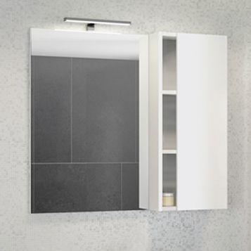 Зеркало-шкаф с одной створкой и пространствами для открытого хранения.