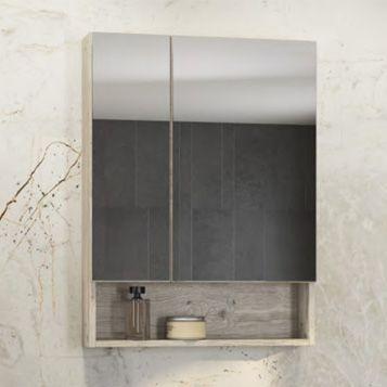 На нижней внешней полке можно расположить невысокие принадлежности для умывания. Название: Зеркало-шкаф