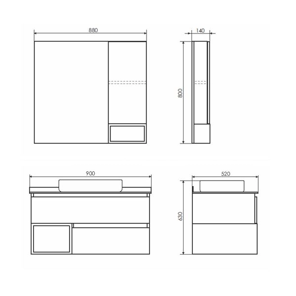 Габариты (ШхВхГ): 880*800*140 мм