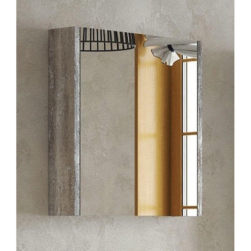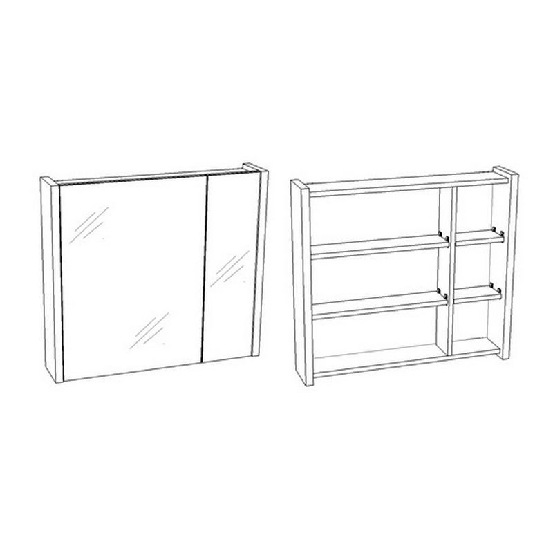 У зеркала-шкафа 2 двери с зеркалами на 500 мм и 192 мм. Боковины из ЛСДП 26 мм толщиной. У дверей есть свисы сверху и снизу - с помощью них она открывается. Позади дверей - вкладные полки. Зеркало-шкаф является универсальным, то есть при переворачивании его можно повесить большой дверью справа или слева.
