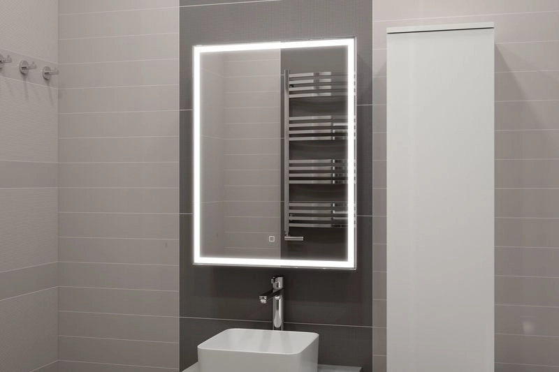 Зеркало-шкаф для ванной комнаты с LED подсветкой и сенсорным выключателем (петли расположены слева)
