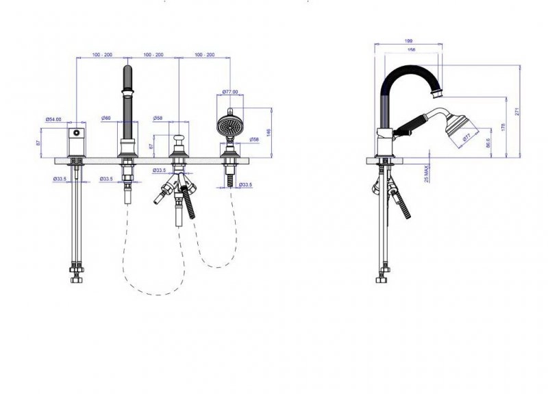 СМЕСИТЕЛЬ НА БОРТ ВАННЫ С ВЫДВИЖНЫМ ДУШЕМ И ПЕРЕКЛЮЧАТЕЛЕМ CEZARES OLIMP-BVDM