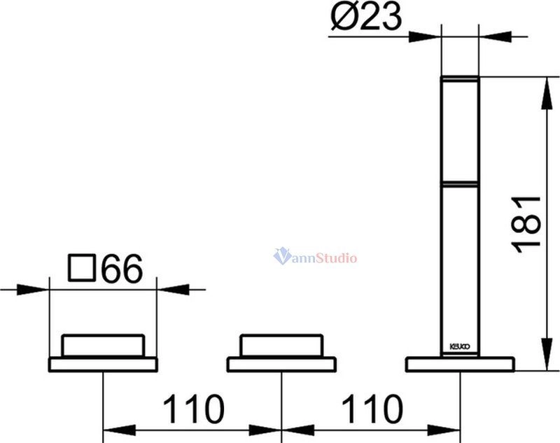 Параметры керамических вентилей для изменения температуры и для напора воды: 6,6 см (Ш). Длина смесителя вместе с керамическими вентилями - 22 см