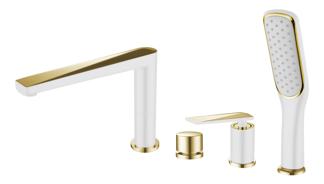 Смеситель врезной на борт ванны Boheme VENTURO белый + золото 380-W