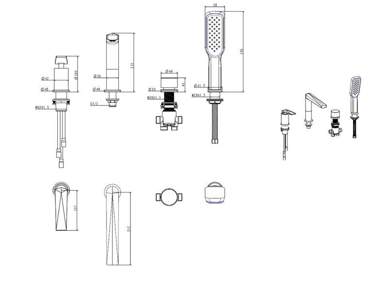 гибкая подводка G1/2, крепежный комплект, Смеситель