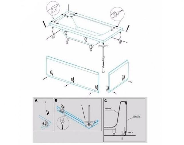 Универсальный установочный комплект для 2-х панелей прямоугольной акриловой ванны