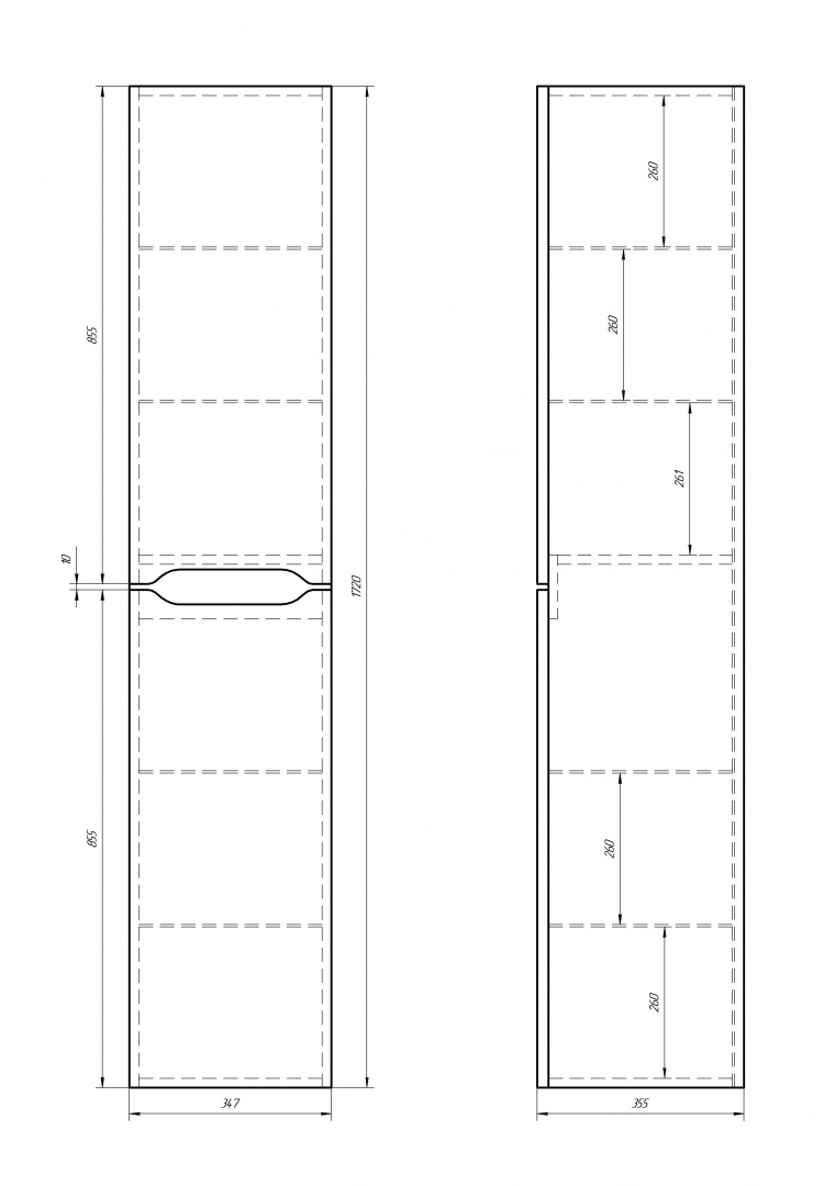 Высота 1720 мм Пенал подвесной оборачиваемый (перевешиваются дверцы - верхняя вниз, нижняя наверх, отверстия намечены) Дополнительно можно установить на ножки QL (4 шт., покупаются отдельно)Фурнитура доводчики Hettich Доп. Функции 4 Стеклянные полочки Высота 1720 мм