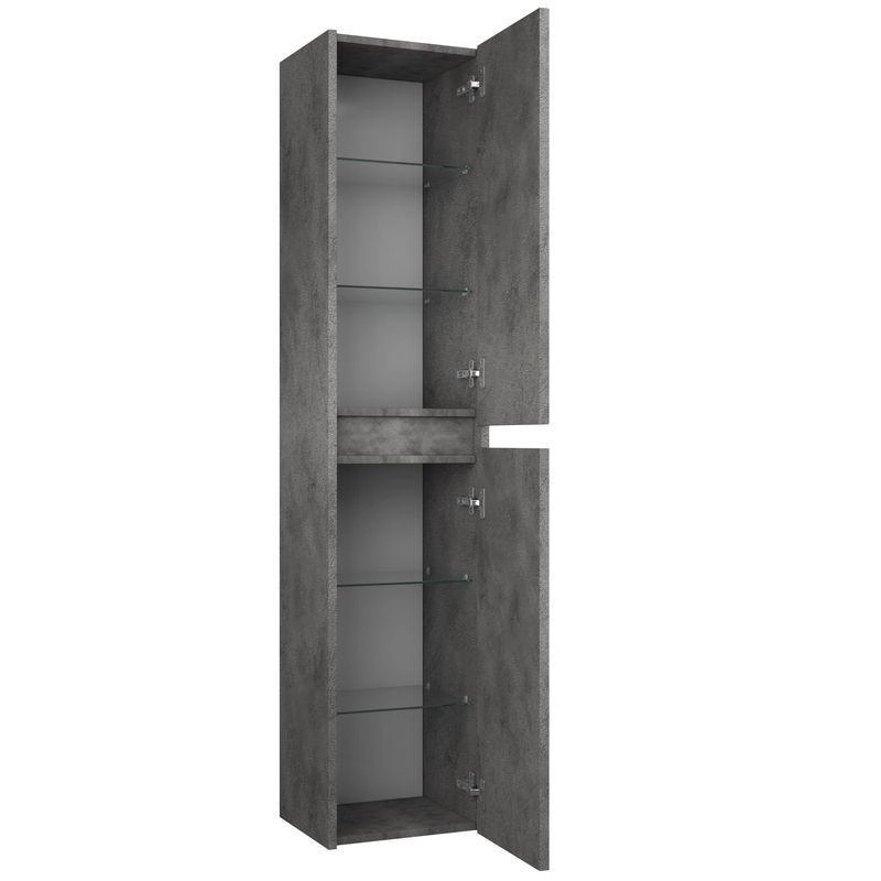 Материал корпуса МДФ. Материал фасада МДФ. Покрытие корпуса ПВХ. Покрытие фасада ПВХ. Цвет темный камень/матовый .Система хранения с дверками. Механизм доводчика. В комплекте: крепления/полки стеклянные.
