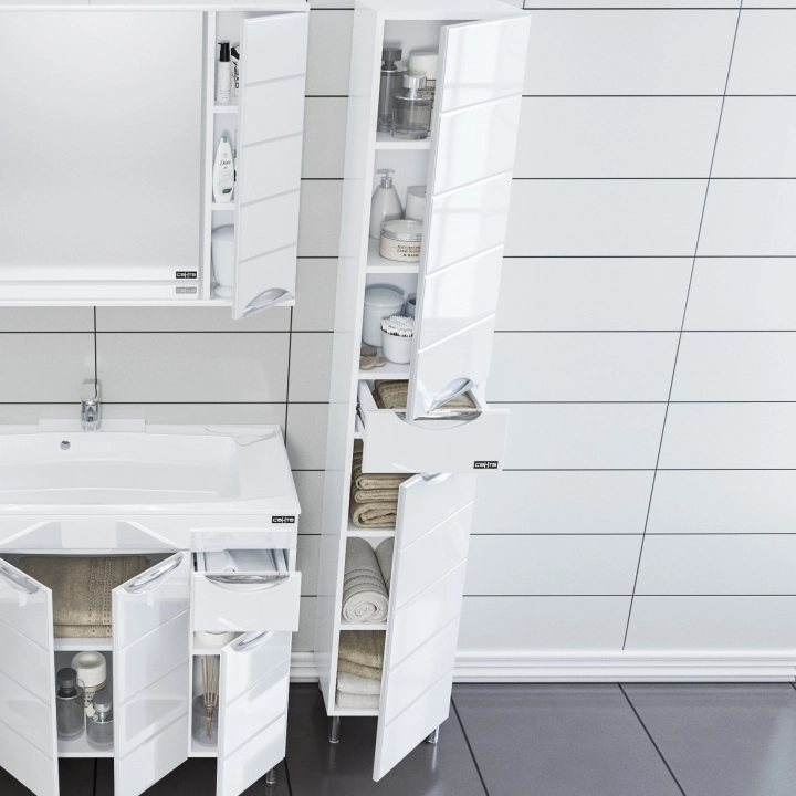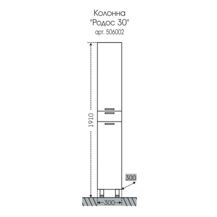 Шкаф-колонна СаНта Родос 30 506002, напольный Коллекция Родос - современная и стильная мебель по приемлемой цене.Фасадные и боковые стенки мебели выполнены из МДФ покрытого ПВХ плёнкой. Комплектация: ручка хром - 3 шт., на дверках петли плавного закрывания - 2 шт., выдвижной ящик с шариковыми направляющими полного выдвижения - 1 шт., ножка хром - 2 шт., ножка пластик - 2 шт.