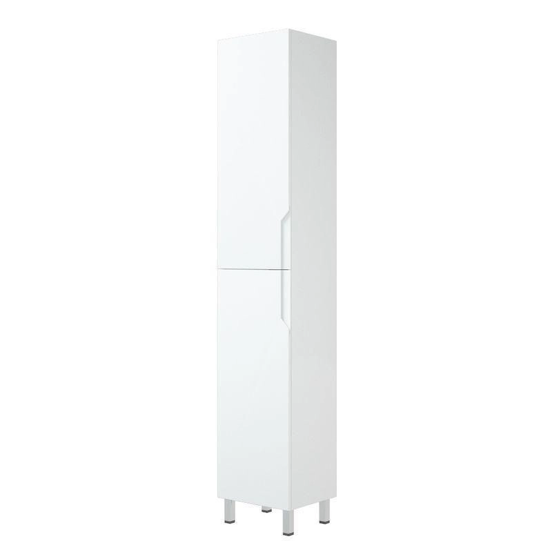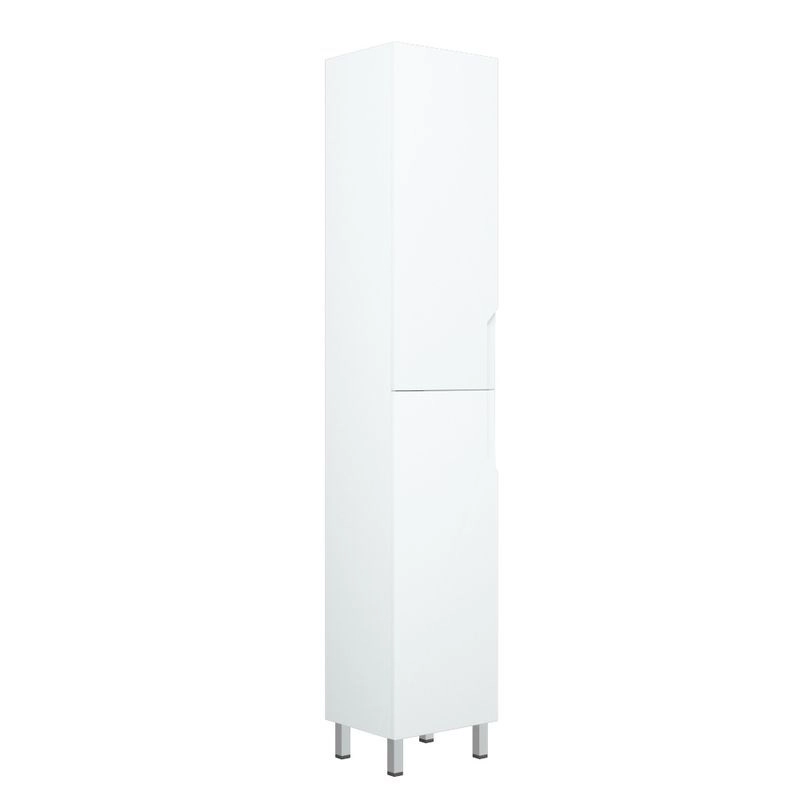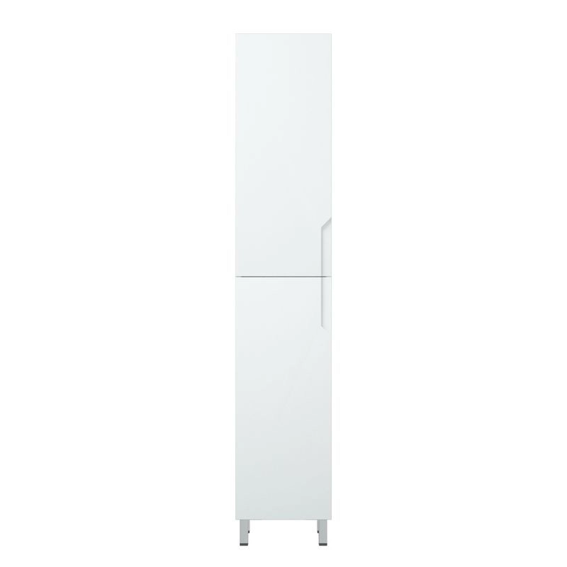 У пенала Юта 2 распашные двери, позади вкладные полки. Двери без ручек - есть специально сделанная фрезеровка для удобного открывания. Пенал является универсальным, то есть может быть как правым, так и левым путем переворачивания. Все двери на петлях с доводчиками. У пенала 4 металлические опоры. Фасады и боковины - эмаль белая глянец.