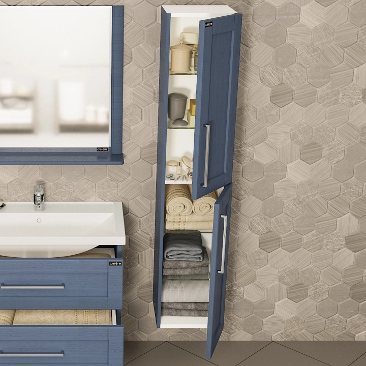 Шкаф-пенал для ванной СаНта Венера 30 подвесной. Фасады колонны изготовлены из МДФ, корпус колонны из влагостойкого ЛДСП. Корпус и фасад покрыты текстурной пленкой под дерево. Пенал укомплектован несъемными полочками из стекла. Петли у колонны с плавным закрыванием. Открывание дверей распашное. Купить шкаф-пенал для ванны вы можете оставив заказ на нашем сайте. Шкаф-колонну вы можете приобрести в дополнение к тумбам в ванную комнату из коллекции Санта Венера.