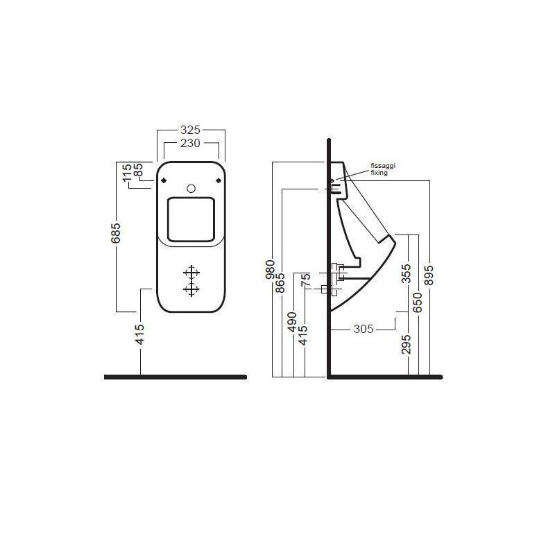 Писсуар подвесной Hatria FUSION U YXE101 белого цвета, размер 68.5х32х30.5 см. Подключение смыва к писсуару (внутренний, скрытый), подключение слива в канализацию скрытое. Манжета и крепления входят в комплектацию. Крышка приобретается отдельно (YXZR01)