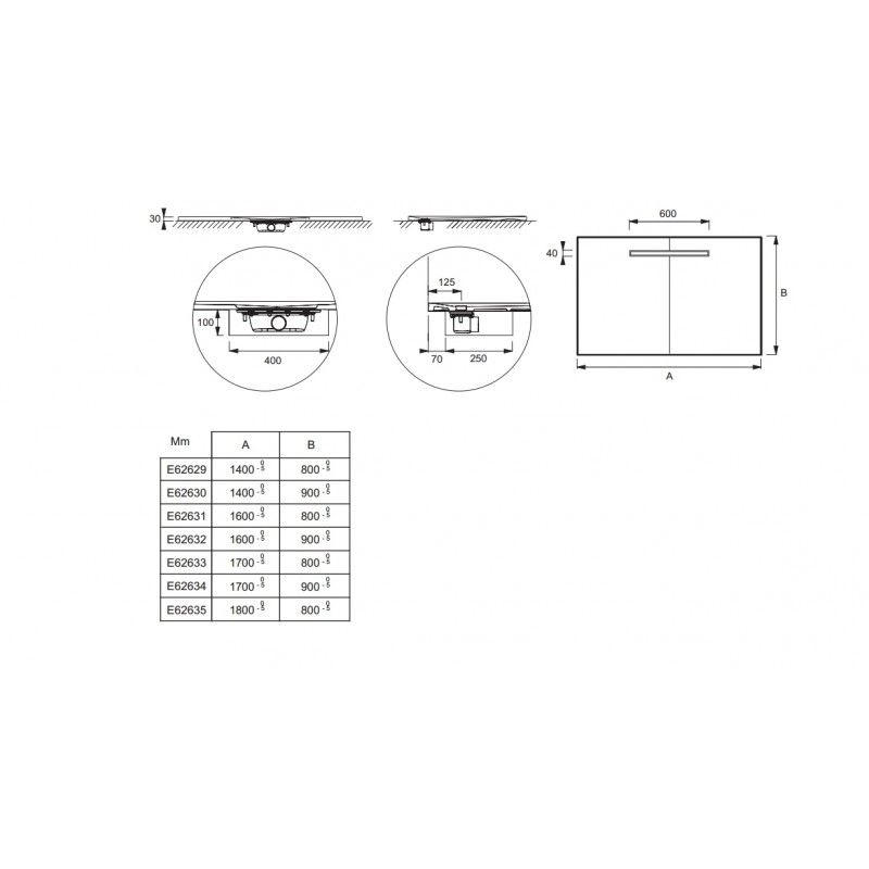 ПРЯМОУГОЛЬНЫЙ ДУШЕВОЙ ПОДДОН ИЗ НЕОКВАРЦА, 140 X 90 СМ