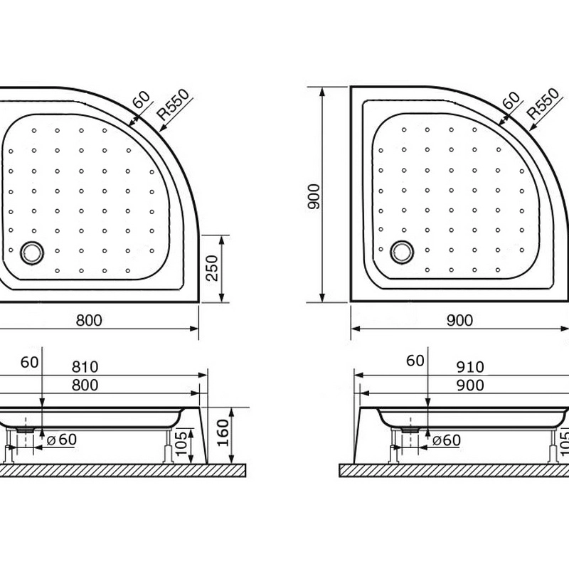 Душевой поддон полукруглый RGW LUX/TN-P 80х80х16, артикул 16180488-41 Размер: 800х800х160 мм. Глубина: 60 мм Высота поддона: 160 мм Цвет поддона: Белый Радиус стандарт R-550 Акриловый поддон для душа Все загрязнения без труда можно смыть с поверхности обычной водой с помощью ручной душевой лейки Рельефное дно поддона Установочный стеллаж в комплекте Без сифона Диаметр отверстия для сифона 60 мм Литой экран Рекомендуемая нагрузка на поддон до 130 кг Страна производитель: Россия Гарантия: 1 год
