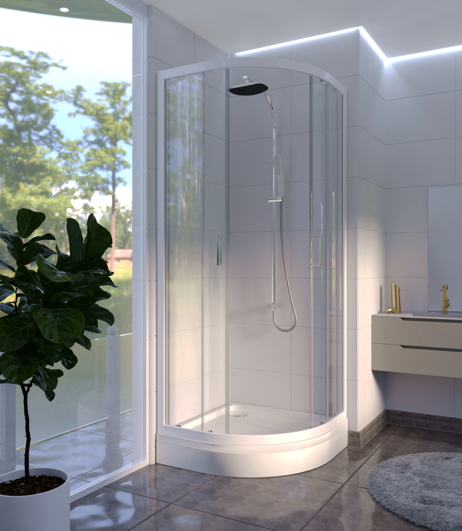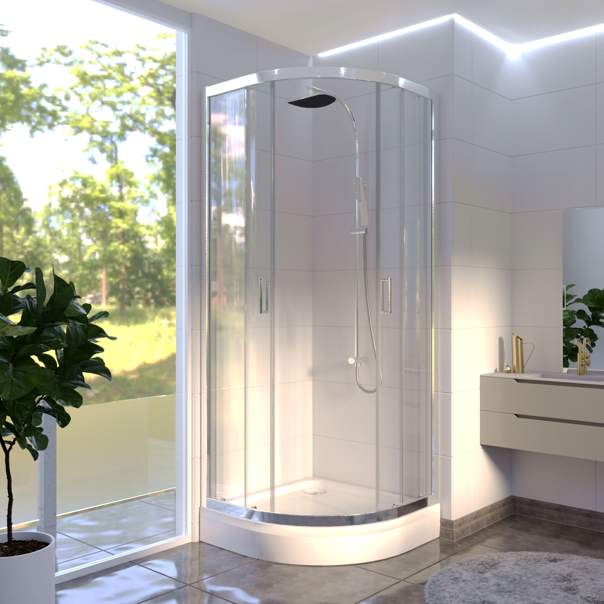 Поддон к душевому углу Берген RD 100х100 — это радиальный поддон на прочной раме-подставке, оснащенный удобным устройством слива воды и декоративной панелью. Изделие отличается компактностью и эргономичностью, идеально подходит для установки в небольших санузлах, обеспечивая комфорт и функциональность при приеме душа.
