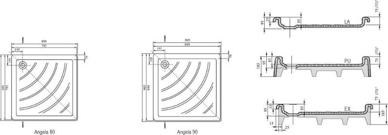 Размер: 80*80. Высота: 185 мм. самонесущий без панели, для облицовки кафелем