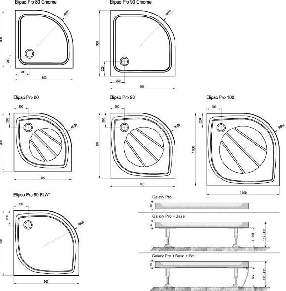 Размер: 100*100 см. Высота 3 см . Полукруглый душевой поддон Elipso Pro-с противоскользящей поверхностью. Из литого мрамора, экстраплоский. Ножки, панель и сифон приобретаются отдельно(см. доп. комплектацию).