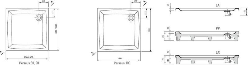 Размер: 100*100 см. Высота 175 мм. Акриловый квадратный поддон Perseus-самонесущий без панели, предназначен для облицовки кафельной плиткой