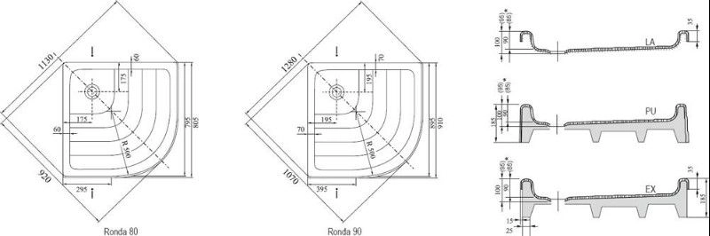 Размер: 80*80. Высота: 185 мм. самонесущий без панели, для облицовки кафелем