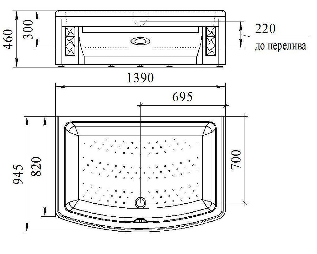 Высокий поддон к душевому углу Диана — удобное решение для организации душевой зоны. Поддон установлен на прочной раме-подставке, что обеспечивает устойчивость конструкции. В комплект входят устройство слива-перелива , фронтальная и две торцевые панели, которые создают аккуратный внешний вид и упрощают монтаж.