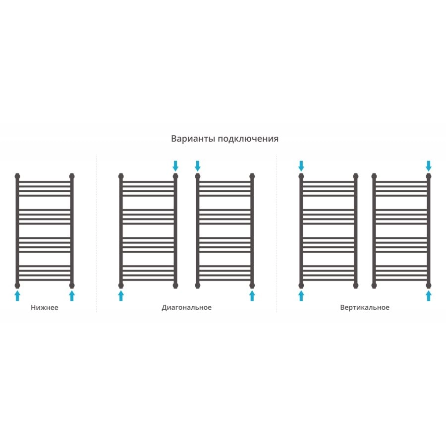 Подключение труб диагональное / нижнее / вертикальное