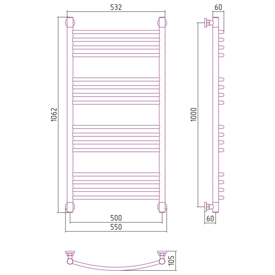 Комплектация : Полотенцесушитель-1 шт.;Корпус угловой проходной-2 шт.;Корпус угловой глухой-2 шт.;Штуцер для коллектора-4 шт.;Прокладка фторопластовая для коллектора-4 шт.;Заглушка угла-3 шт.;Заглушка декоративная-4 шт.;Прокладка силиконовая G 3/4?-2 шт.;Отражатель декоративный TUBE (для эксцентрика)-2 шт.;Эксцентрик G 1/2? ? G 3/4?-2 шт.;Спускной клапан-1 шт.;Ключ ШГ №2,5-1 шт.;Ключ ШГ №3-1 шт.;Ключ ШГ №12-1 шт.;Конус-фальшгайка опоры TUBE-2 шт.;Основа опоры TUBE-1 шт.;Паспорт-1 шт.