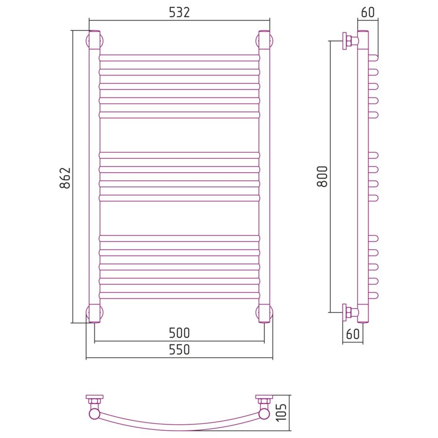 Комплектация : Полотенцесушитель-1 шт.;Корпус угловой проходной-2 шт.;Корпус угловой глухой-2 шт.;Штуцер для коллектора-4 шт.;Прокладка фторопластовая для коллектора-4 шт.;Заглушка угла-3 шт.;Заглушка декоративная-4 шт.;Прокладка силиконовая G 3/4?-2 шт.;Отражатель декоративный TUBE (для эксцентрика)-2 шт.;Эксцентрик G 1/2? ? G 3/4?-2 шт.;Спускной клапан-1 шт.;Ключ ШГ №2,5-1 шт.;Ключ ШГ №3-1 шт.;Ключ ШГ №12-1 шт.;Конус-фальшгайка опоры TUBE-2 шт.;Основа опоры TUBE-1 шт.;Паспорт-1 шт.