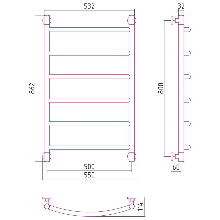 Комплектация : Полотенцесушитель-1 шт.;Корпус угловой проходной-2 шт.;Корпус угловой глухой-2 шт.;Штуцер для коллектора-4 шт.;Прокладка фторопластовая для коллектора-4 шт.;Заглушка угла-3 шт.;Заглушка декоративная-4 шт.;Прокладка силиконовая G 3/4?-2 шт.;Отражатель декоративный TUBE (для эксцентрика)-2 шт.;Эксцентрик G 1/2? ? G 3/4?-2 шт.;Спускной клапан-1 шт.;Ключ ШГ №2,5-1 шт.;Ключ ШГ №3-1 шт.;Ключ ШГ №12-1 шт.;Конус-фальшгайка опоры TUBE-2 шт.;Основа опоры TUBE-1 шт.;Паспорт-1 шт.